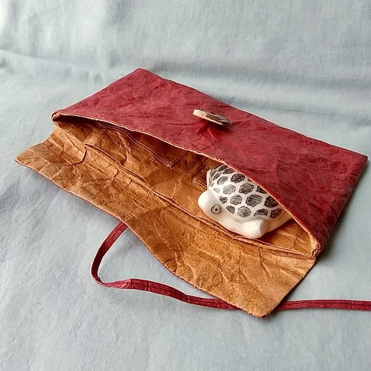 タイベック(Tyvek®︎)を使用した財布(札入れ)です。革のように見えて、紙のような手触り、おもしろい素材です。内部に仕切りがあり4枚のカードを収納できます。タイベックの軽さもいいところ。荷物を軽くしたい方におすすめ。※レッドは参考商品です。