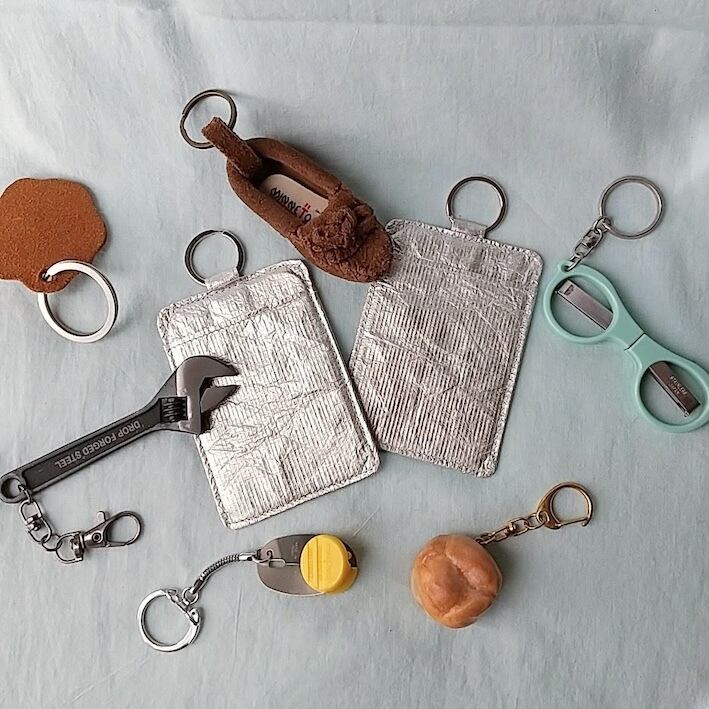 シンプルなシルバーのケースにお手持ちのカラフルなチャームをつけてみてはいかがですか。