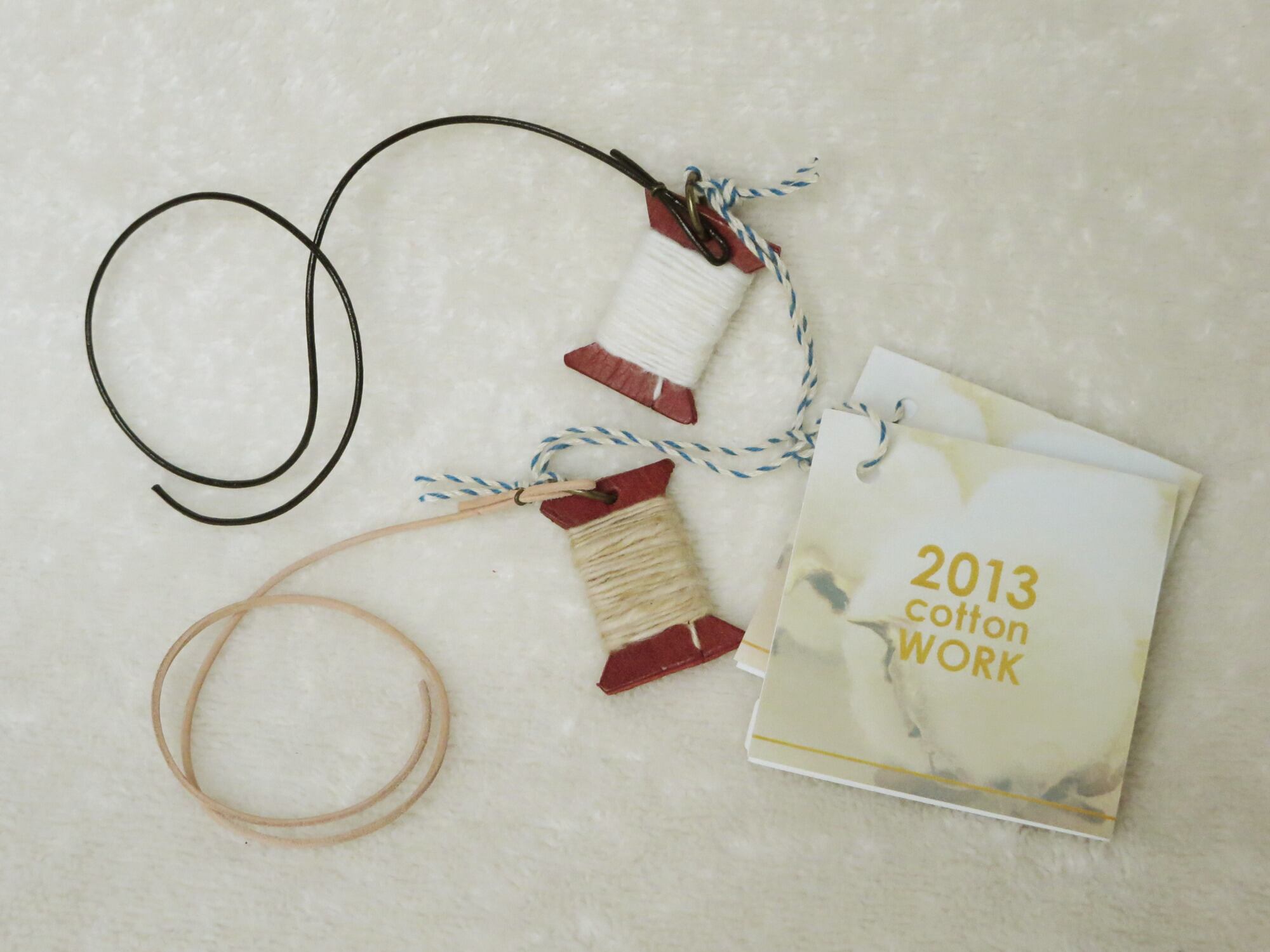 庭で育てたコットンから糸を紡いで、糸巻きのブックマークに。